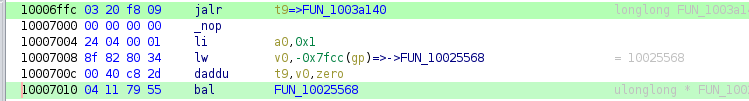Taking note, the procedure starts at the instruction code 10006ffc and ends at 10007010. The mnemonic used is “bal” (ARM - Branch and Link Instruction), which is used to call a function and move the link register to the PC (MOV PC, LR) to return from a function. In our case, the function being called is FUN_10025568, which is the exit loop of the sequential order of the IF statement.